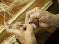 起源は13世紀頃。糸芭蕉の原皮からとれる糸を手で績み、絣糸を手くくりし、琉球藍、車輪梅等の植物染料で染め、織りあげる。沖縄固有の織物で、軽くてさらりとした風合いが古くから人々に愛されている。