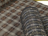 起源は15世紀頃。琉球王府の御用布として、読谷以外の一般庶民は着用できなかったという。生糸、綿糸を素材に幾何学文様を色糸で浮かせ、それに絣や縞・格子をあしらった南国的な織物である。